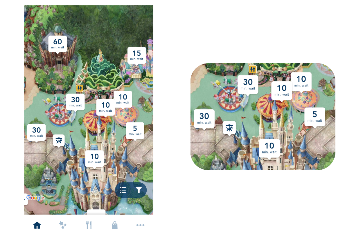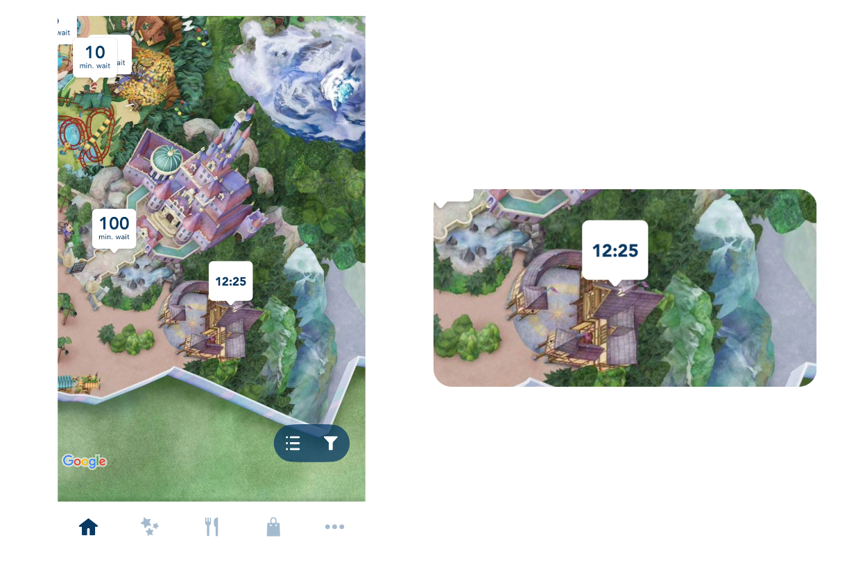 และยังแสดงเวลาในการรอโดยคร่าวๆ ว่าต้องรอกี่นาทีในการต่อแถวรอเครื่องเล่น