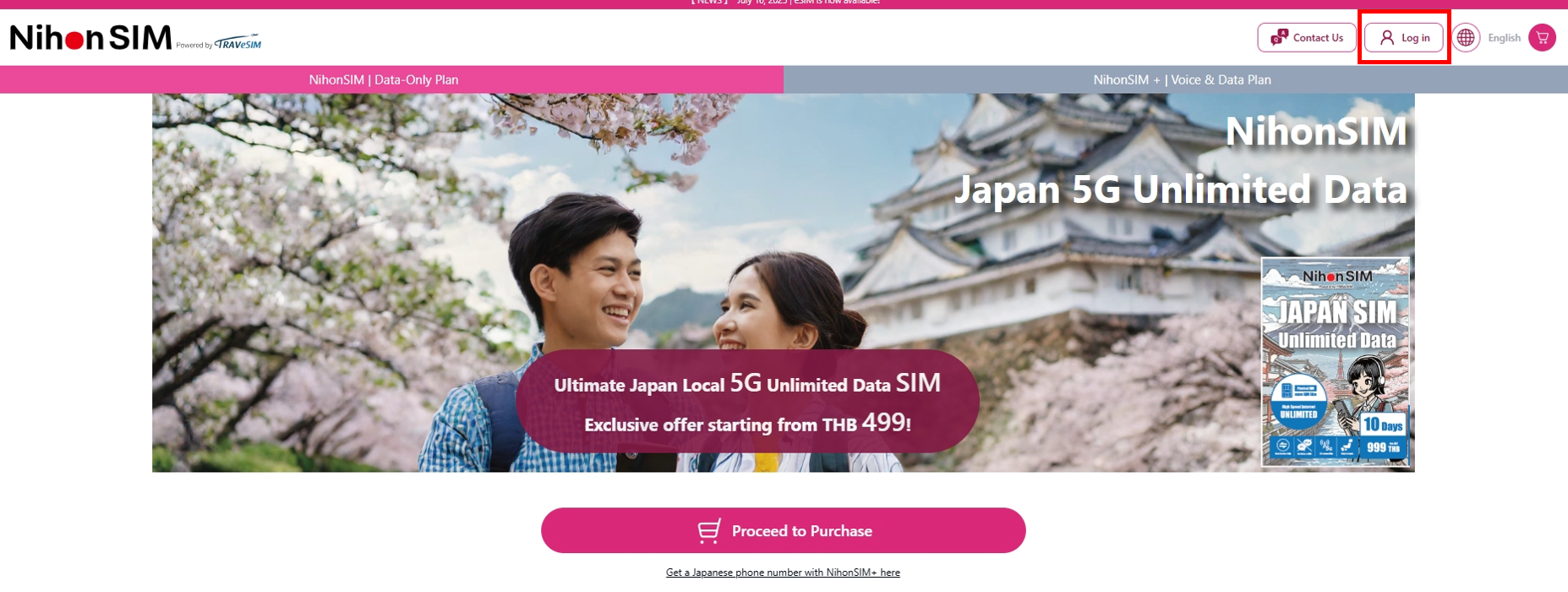 1. เข้าหน้า Web NihonSIM ไปที่ Log in (มุมขวาบน)