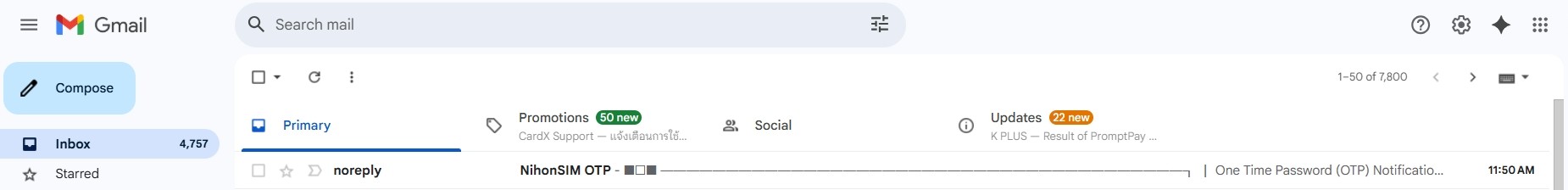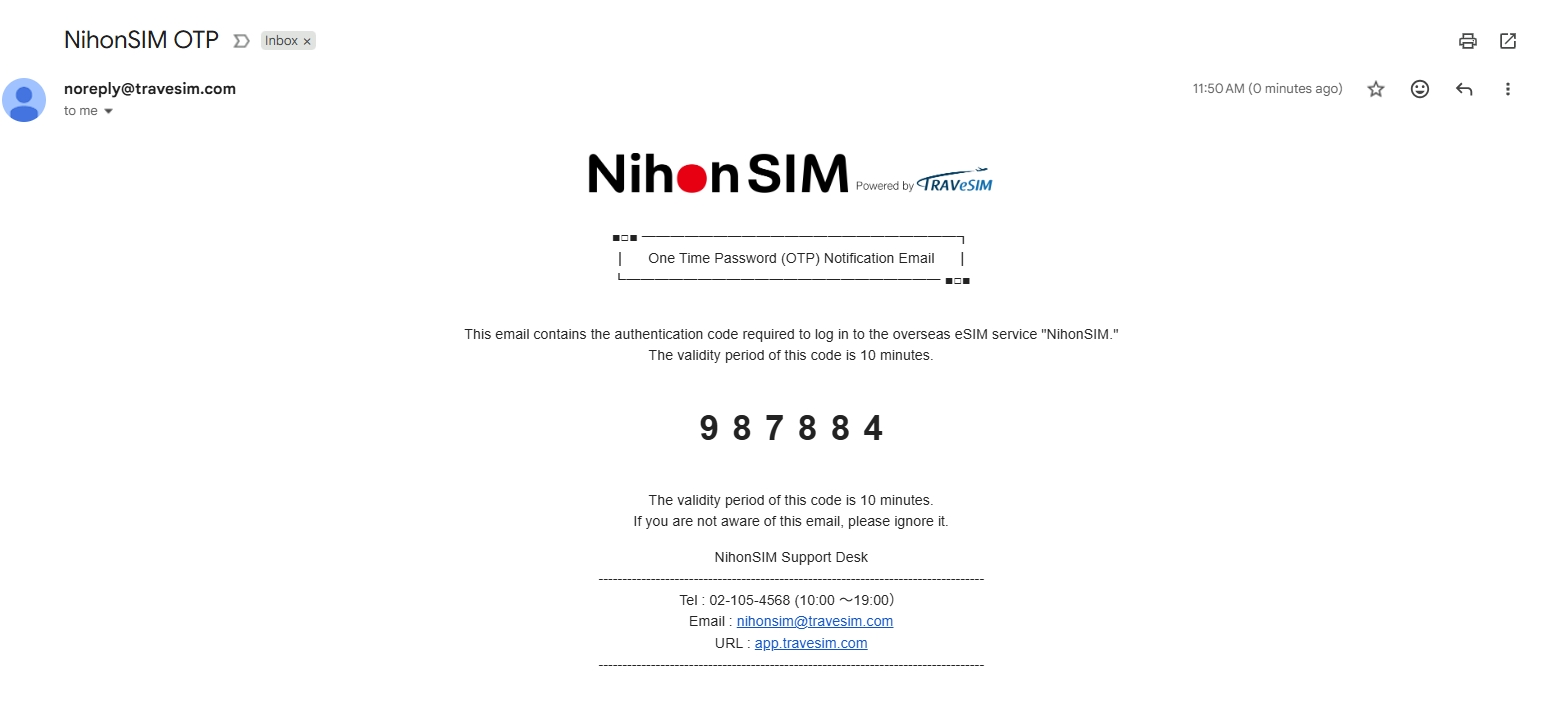 4. จะได้รับอีเมล์ ‘NihonSIM OTP’ แจ้งรหัส