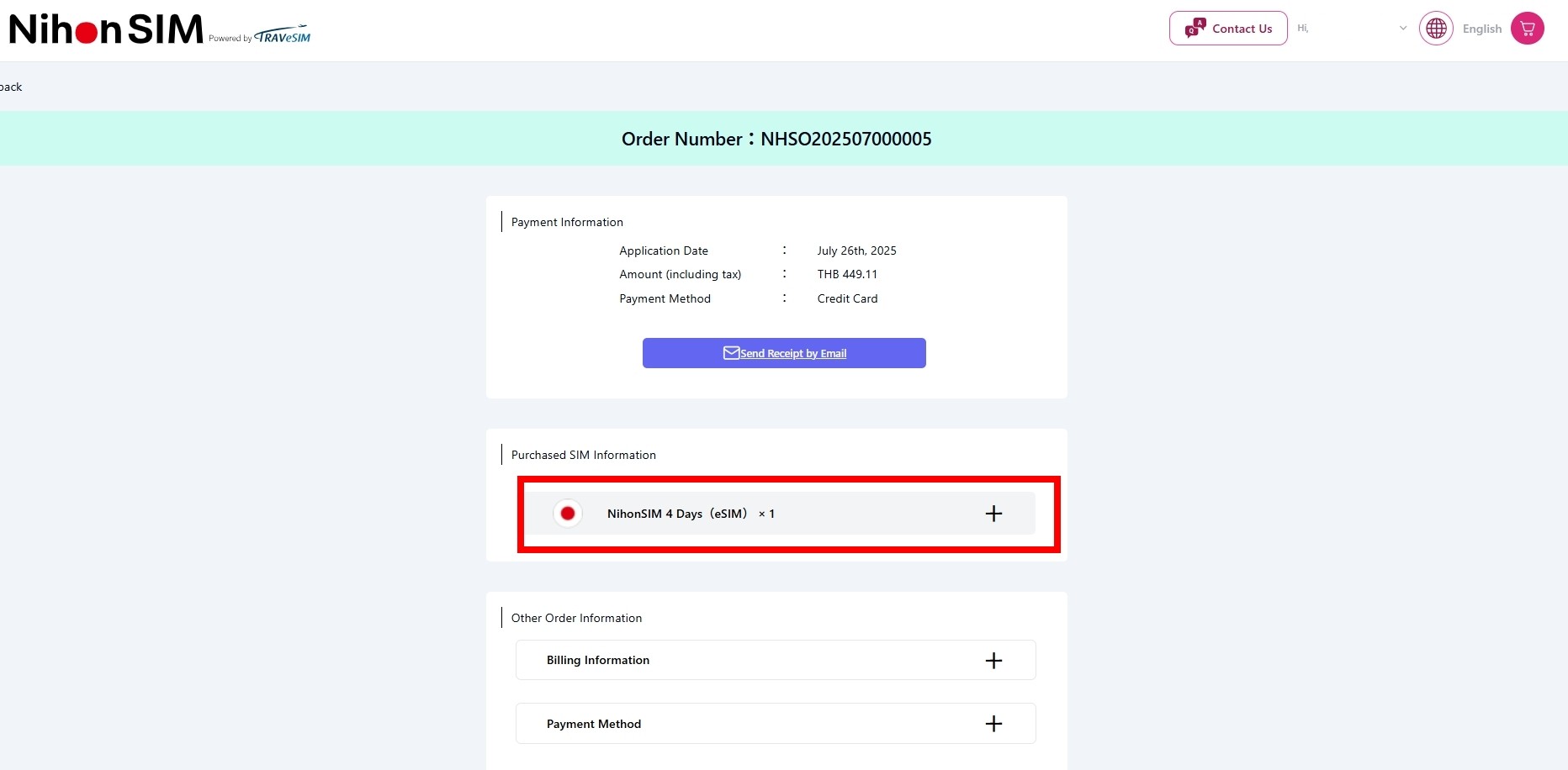 เมื่อทำการสั่งซื้อ NihonSIM (eSIM/Physical SIM) เรียบร้อยแล้ว