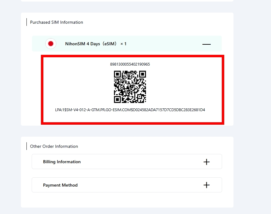 วิธีการรับข้อมูล QR Code NihonSIM (eSIM )