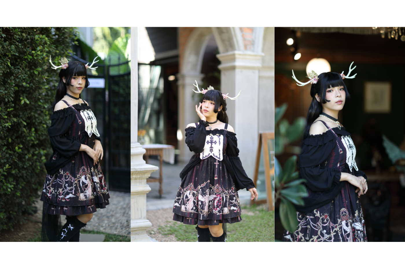 การแต่งกายที่เน้นสีดำ การใช้เครื่องประดับโลหะ เครื่องราง และการออกแบบที่ดูมืดหม่นลึกลับ เป็นสไตล์โลลิต้าที่ได้รับอิทธิพลอย่างมากจากแฟชั่นโกธิคแบบตะวันออกและสไตล์วิกตอเรีย มีจุดเด่นอยู่ที่การใช้สีเข้มและเครื่องประดับที่ตกแต่งด้วยลวดลายโครงกระดูก, ค้างคาว, แมงมุม รวมถึงสัญลักษณ์อื่นๆ ที่เป็นที่นิยมในวัฒนธรรมโกธิค เช่น ตัวละครจากภาพยนตร์ของ Tim Burton นอกจากนี้ ลวดลายประตูเหล็กดัดและสถาปัตยกรรมในยุควิกตอเรียก็มักถูกนำมาใช้เป็นลายพิมพ์บนเสื้อผ้าด้วยเช่นกัน ส่วนเครื่องประดับยอดนิยมสำหรับสไตล์นี้ได้แก่ หมวกเล็กๆ, ที่คาดผมทรงสี่เหลี่ยม และเข็มกลัด