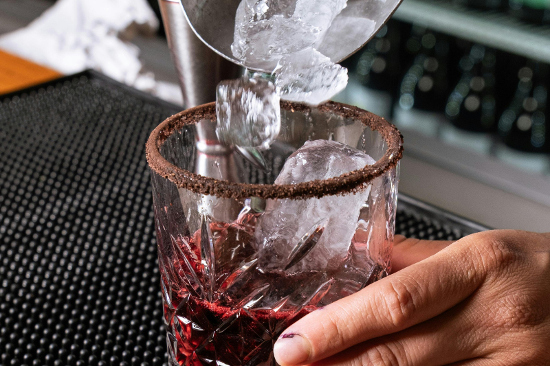 – บาร์เทนเดอร์แกะน้ำแข็งก้อนกลมให้แขก เพื่อแสดงถึงความตั้งใจ ใส่ใจในการทำเครื่องดื่ม