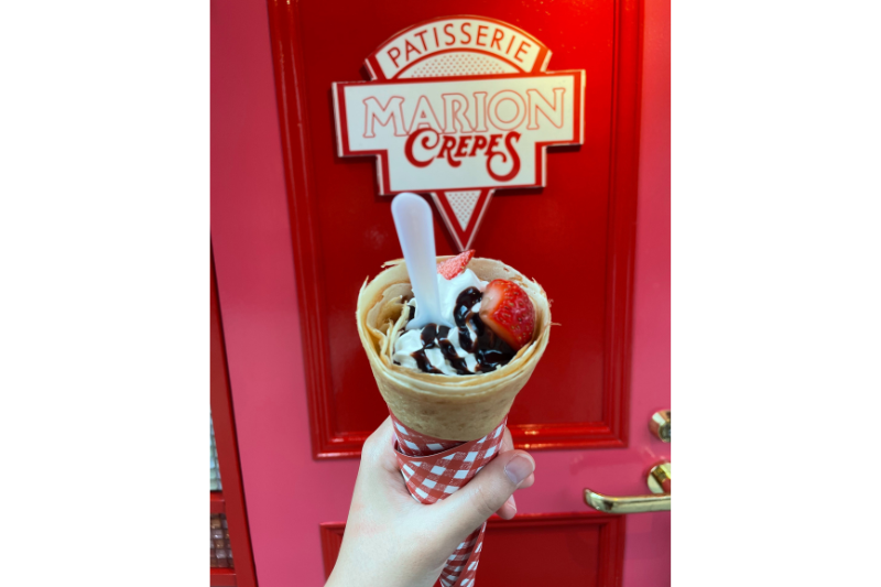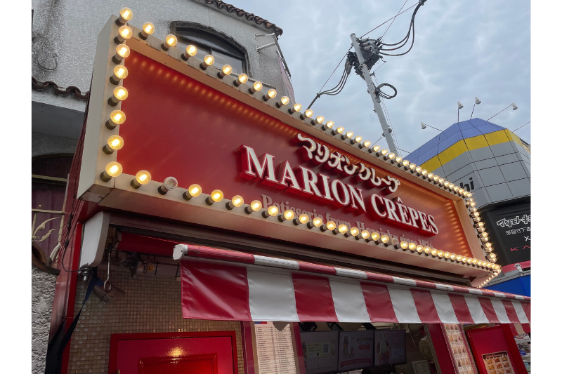 ตอนที่ซาสึกิไปเที่ยวแถว Takeshita Street แถวฮาราจุกุ จะเห็นนักท่องเที่ยวกินเครปญี่ปุ่นกันหลายคน อดใจไม่ไหว ไปเดินหาร้านเครปกินด้วย จนเดินไปเจอร้านที่ชื่อว่า Marion Crêpe ร้านสีแดงๆ ประดับไฟสีเหลืองดวงกลมๆ โดดเด่นในซอย Takeshita Street เดินเข้าไปเรื่อยๆ จะเห็นร้านนี้แต่ไกลเลยค่ะ
