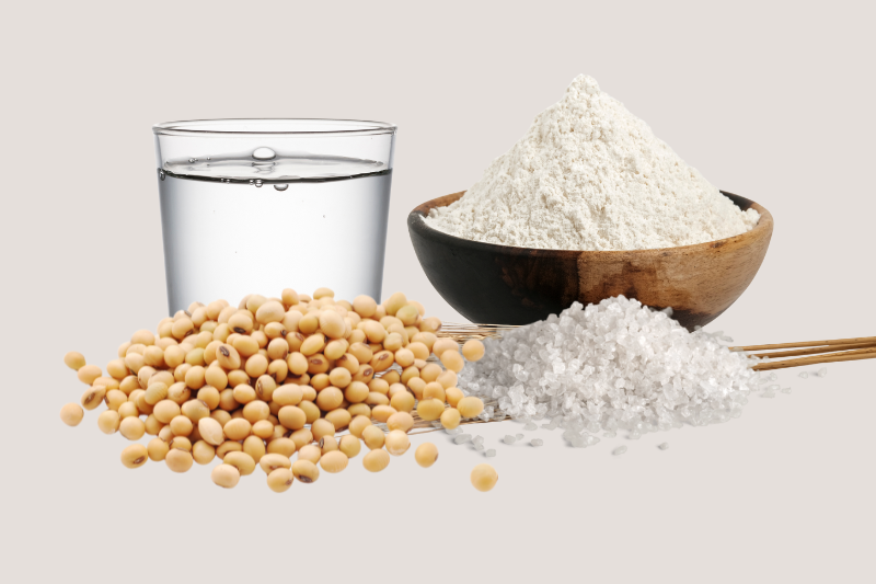 ส่วนผสมหลักของซอสถั่วเหลืองญี่ปุน: น้ำ เกลือ ถั่วเหลือง ข้าวสาลี